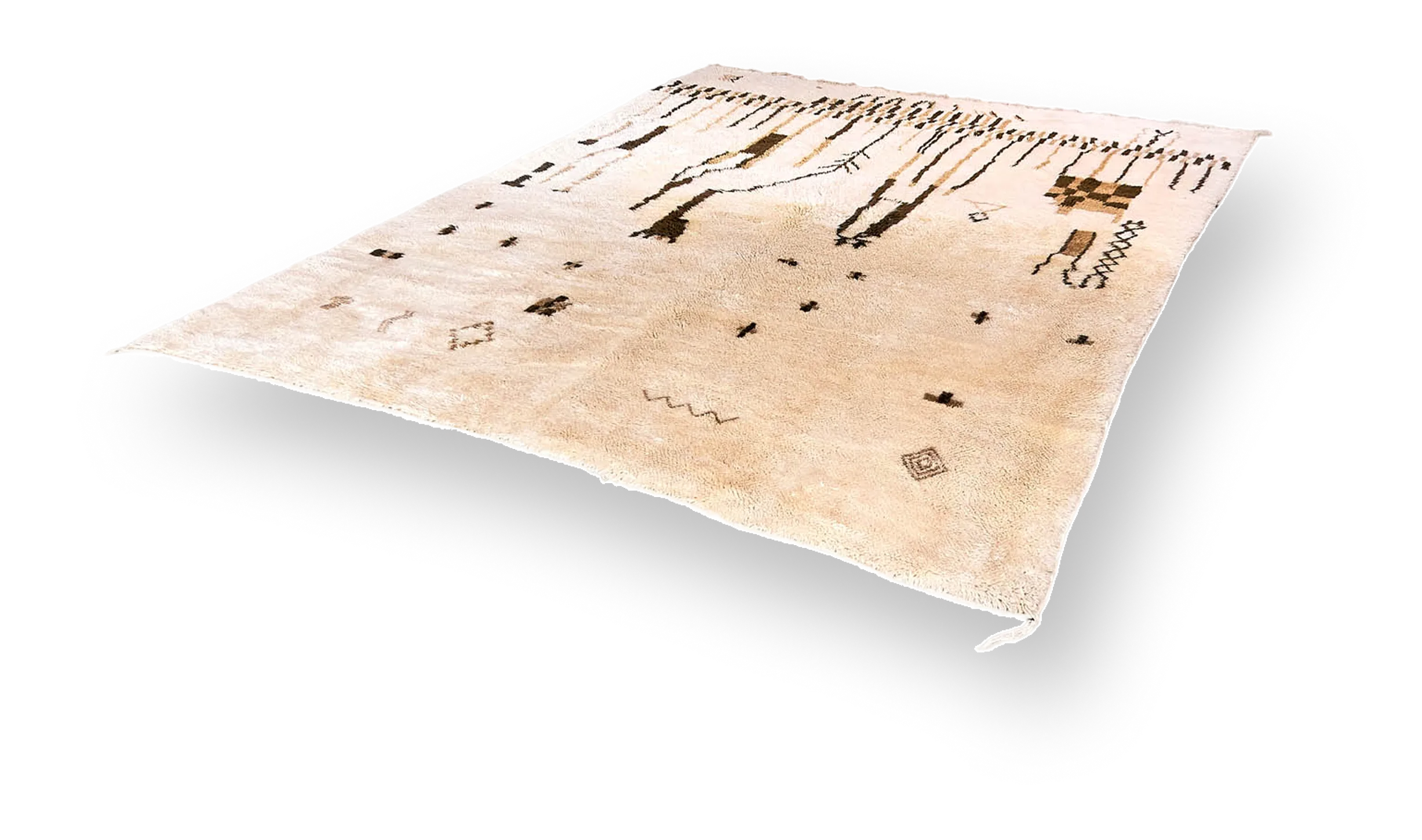 Made in a specialized highland studio, ISMA combines traditional Amazigh technology with modern precision. The flat, dense pile creates an elegant, almost architectural surface — never softened, but clear and defined. Each line was drawn deliberately: not an ornament, but meaning. This is not a standard Berber rug. This is a collector's item — rare quality, pure wool, unmistakable signature.